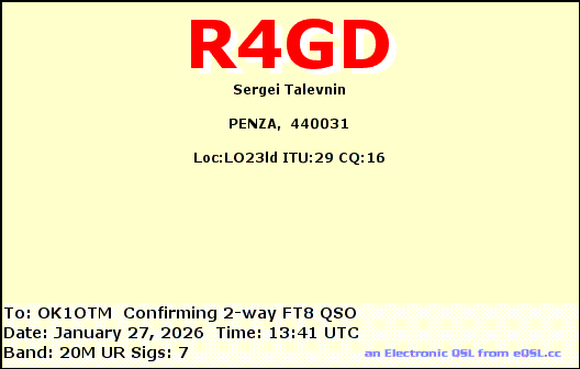 | 04.02.2026 Pravidelná schůzka | 5x 2x Tahle schůzka byla vyloženě povídací a teoretická. Nicméně zajímavá témata se řešila. Třeba obnova PB aku respektive nové LiFePO aku do čtyřkolky, očkování proti nejrůznějším chorobám, Hansovo nákup květiny po 10 letech, web, atd. Trošku jsme se dotkli i QRP závodu, ale bohužel to nevypadalo, že by to u někoho vyvolalo touhu vysílat. Ale na schůzce se aspoň trošku vysílalo, pár KV spojení a přes BPL se ozval Lvíček. |