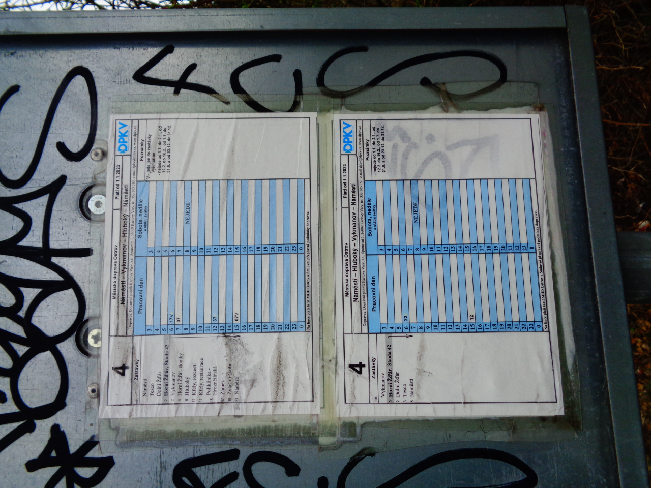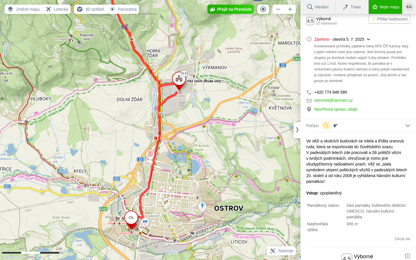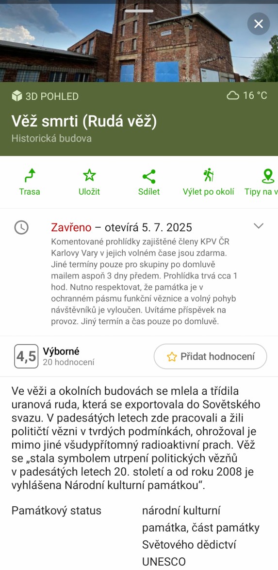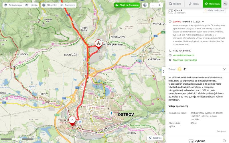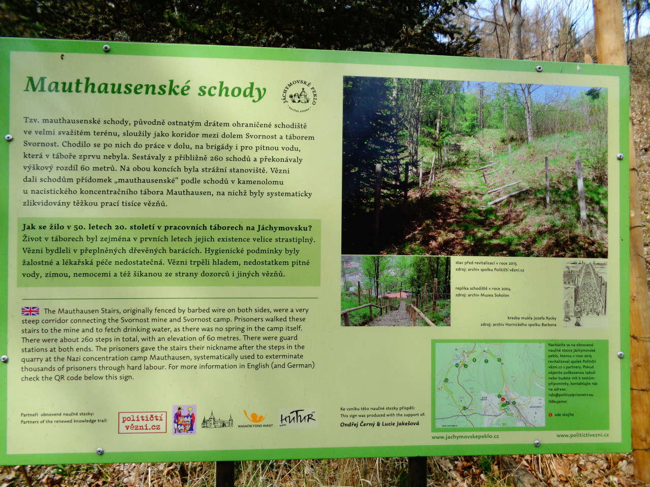 10:46 Kryté dřevěné schodiště  10:46 Kryté dřevěné schodiště  10:50 Důl Svornost  10:50 Důl Svornost  10:52 Štola č. 1  10:54  10:58 Důl Svornost  11:02 Štola č. 1  11:06 výhled na Jáchymov  11:07  11:07 Mauthausenské schody_Částečná replika příkrého schodiště, po kterém se v 50. letech 20. století vězni přesouvali mezi dolem Svornost a stejnojmenným pracovním táborem umístěným o 60 výškových metrů výše  11:10 Mauthausenské schody_Částečná replika příkrého schodiště, po kterém se v 50. letech 20. století vězni přesouvali mezi dolem Svornost a stejnojmenným pracovním táborem umístěným o 60 výškových metrů výše  11:10 Pracovní tábor Svornost  11:10 Pracovní tábor Svornost  11:24  11:31 Věž Prachárna  11:32 Věž Prachárna  11:33 Zřícenina hradu Freudenstein (Šlikův hrádek)  12:03  12:08  12:11 u domova pro seniory  12:18  12:26  12:46 Jáchymov_ulice K lanovce_najdi ZTZ  12:46 Jáchymov_ulice K lanovce_najdi ZTZ  12:55  12:57 Jáchymov_pohled od býv.nádraží  13:13 trať  13:17 Jáchymovský tunel  Jáchymovský tunel  13:29  13:47 Bývalá železniční stanice Horní Žďár  13:47 Bývalá železniční stanice Horní Žďár  13:49 Kamenný železniční mostek  13:49 Kamenný železniční mostek  14:06 Bývalá továrna na trolejbusy, závod Škoda Ostrov  14:06 Bývalá továrna na trolejbusy, závod Škoda Ostrov  spoje do Škodovky  14:08 Bývalá továrna na trolejbusy, závod Škoda Ostrov  14:16  14:24 Bývalá továrna na trolejbusy-závod Škoda Ostrov  14:36 Rudá věž smrti  14:36 Rudá věž smrti  Rudá věž smrti  14:37 Rudá věž smrti  14:37 Rudá věž smrti  14:47 Dolní Žďár  15:01 Dolní Žďár_těleso dráhy  15:03 Ostrov_těleso dráhy  15:14 Ostrov_těleso dráhy  15:14 Ostrov  15:16 Ostrov_těleso dráhy  pozdní oběd  15:51 Ostrov_býv. zastávka  15:52 Ostrov_býv. zastávka  15:59 zámecký park  15:59 zámecký park  16:00  16:02 Staré nám.  16:02 Staré nám.  16:15 zámecký park  16:25 zámecký park  16:26 zámecký park  16:26 zámecký park |