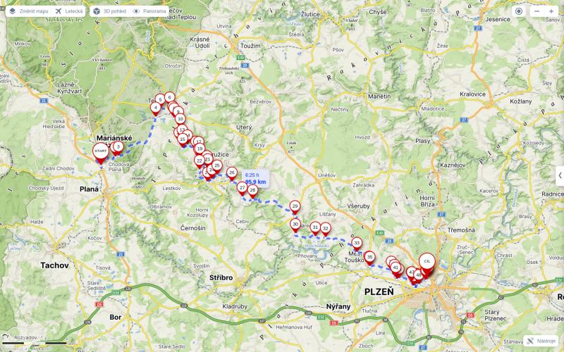 08:43 u nádraží  09:03 občerstvení na cestu  09:11 Plzeň Jižní_nevychovaní problematičtí cyklisté  09:20 Přeprava kol po zásahu  plán  10:15 Chodová Planá  Chyba v mapě  10:16 Chodová Planá_podchod  plán  10:31 Dolní Kramolín_U pramene Ilsano  10:31 Dolní Kramolín_U pramene Ilsano  Dolní Kramolín_U pramene Ilsano  10:39 Dolní Kramolín_U pramene Ilsano  10:39 Dolní Kramolín_U pramene Ilsano  10:39 Dolní Kramolín_U pramene Ilsano_asi jim někdo vypínal vrt  Dolní Kramolín_U pramene Ilsano  10:42 Dolní Kramolín_U pramene Ilsano  10:45 Dolní Kramolín_U pramene Ilsano  10:45 Dolní Kramolín_U pramene Ilsano  10:45 Dolní Kramolín_U pramene Ilsano  11:17 Pod Lazurovým vrchem  11:45 u Výškovic  12:04 II/198  12:05 Ochutnávka kyselky Oriona  12:09 Ochutnávka kyselky Oriona  12:13 II/198 u Teplé  12:14 II/198 u Teplé  12:17 Hotel a restaurace u nádraží v Teplé  12:50 Hotel a restaurace u nádraží v Teplé  13:12 Hotel a restaurace u nádraží v Teplé  13:22 Teplá  13:24 Za Teplou_výhled na klášter  13:28 Zřejmě výstavní JZD  13:31 trochu pozapomenutý  13:39 Před Křepkovicemi  13:42 Trafačka v Křepkovicích  13:48 Křepkovická kyselka  13:48 Křepkovická kyselka  13:48 Křepkovická kyselka  13:48 Křepkovická kyselka  14:00 Pomník letecké havárie_machroval a spadnul  14:00 Pomník letecké havárie_machroval a nedopadlo to dobře  14:05  14:05  14:15 Loučský pramen  14:15 Loučský pramen  14:15 Loučský pramen  14:36 za obcí Kamýk_výhled na ještě nevzniklou trať  14:44 Oprava drhnoucího blatníku v obci Kamýk  15:03 v obci Pačín  15:03 v obci Pačín  15:07 Za obcí Pačín  15:10 výhled na ještě nevzniklou trať  15:13 CT kolem Ovčího vrchu  15:15 CT kolem Ovčího vrchu  15:20 CT kolem Ovčího vrchu  15:32 Ovčí vrch  15:32 CT kolem Ovčího vrchu  15:33 výhled na Krasíkov  15:34 CT kolem Ovčího vrchu  plán  15:42 Další porucha  15:45 CT u obce Čeliv  15:48 CT Čeliv - Konstantinky  15:49 CT Čeliv - Konstantinky  15:52 CT u Konstantinek  15:55 Plánované občerstvení v Konstantinkách zklamalo  plán  16:05 Jedeme rychle  16:13 Nové občerstvení u Šipína  16:47 Nové občerstvení u Šipína  17:59  18:04 Nad Touškovem  18:04 Nad Touškovem  18:04 Ani zrno nazmar  19:02 cestičky u Křimic  vzdálenost  nejvyšší rychlost  průměrná rychlost  celkový čas jízdy |