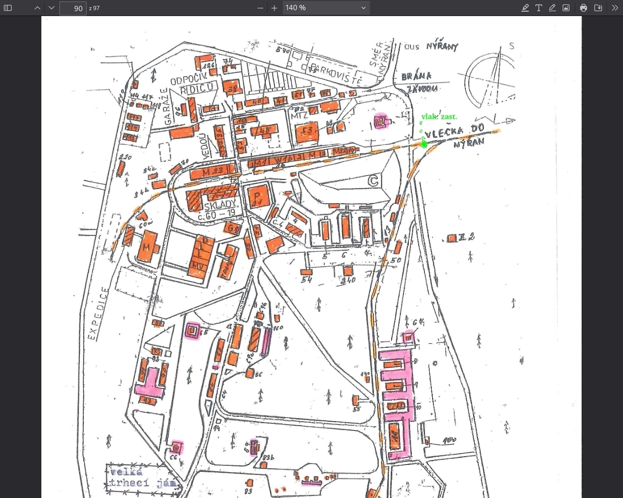Nýřany žst._Žralok od Plzně  Nýřany žst.  Nýřany žst.  Nýřany žst._parní vlak od Plzně  Nýřany žst._parní vlak od Plzně  Nýřany žst._parní vlak od Plzně směr Chotěšov  Nýřany žst._parní vlak od Plzně směr Chotěšov  Nýřany žst._parní vlak od Plzně směr Chotěšov  Nýřany žst.  Nýřany žst.  Nýřany žst._vlak do Diossu  Nýřany žst._vlak do Diossu  Nýřany žst._vlak do Diossu  Nýřany žst._vlak do Diossu  Nýřany žst._vlak do Diossu  Mapa muniční továrny z roku 1938, později Tesly  Nýřany žst._vlak do Diossu, konečná před bránou  Nýřany žst._vlak do Diossu  dřívější a dnešní pohled do areálu Diossu / Tesly / muničního skladu  Mapa muniční továrny z roku 1923, později Tesly  Mapa muniční továrny z roku 1938, později Tesly  V roce 2001 jsou v areálu ještě patrné vlečky  cesta k objektům 28 a 33  Mapa muniční továrny z roku 1923, později Tesly  oblouk před Y k objektům 30 a 27  strážní bunkr u objektu 30  strážní bunkr u objektu 30  objekt 30  objekt 30  objekt 30  Mapa skladů z roku 1923  cesta k objektu 27  objekt 27  objekt 27  v objektu 29  dřívější fotky objektu 29  bunkr v objektu 29  bunkr v objektu 29  cesta k objektu 29  cesta k objektu 29  Mapa skladů munice z roku 1938  cesta k objektu 33  dřívější fotky objektu 33  objekt 33  podhled od objektu 33  u objektu 33  Mapa skladů z roku 1923_zde objekt 33 chybí  keška  keška  cesta od objektu 33  rozcestí k objektům 33 a 28  rozcestí k objektům 33 a 28  u hlavního rozbočení  dřívější fotky  u hlavního rozcestí  u hlavního rozcestí  hlavní rozcestí, rovně 28 a 33, zbytek vpravo  před hlavním rozcestím  plastový bordel  plastový bordel  odbočka ke skladům munice  hala_u_byv._skladu_sřeliva_24-26  hala_u_byv._skladu_sřeliva_24-26  letecké snímky z dřívější doby_sklady ještě stojí  letecké snímky z dřívější doby_sklady ještě stojí  letecké snímky z dřívější doby  hala_u_byv._skladu_sřeliva_24-26  hala_u_byv._skladu_sřeliva_24-26  Mapa muniční továrny z roku 1938, později Tesly  byv._objekt_12  Mapa muniční továrny z roku 1938, později Tesly  pozdější objekt 100  pozdější objekt 100  pozdější objekt 100  pozdější objekt 100  pozdější objekt 100  objekt 10  objekt 10  objekt 11  objekt 11  objekt 11  objekt 11  objekt 11  pozdější objekt 100 a vlevo 11  Mapa muniční továrny z roku 1923, později Tesly  dřívější letecké snímky  dřívější letecké snímky  dřívější letecké snímky_výstavba Faiveley  dřívější letecké snímky - vyšší využití levé cesty  objekt 112  objekt 112  objekt 112  objekt 112  Větrná jáma_osada  Větrná jáma_osada  Janovský mokřad  Janovský mokřad  Janovský mokřad  vlečka do Diossu  vlečka do Diossu u býv.dolu Humboldt  vlečka do Diossu u býv.dolu Humboldt  vlečka do Diossu u býv.dolu Humboldt  vlečka do Diossu u býv.dolu Humboldt  Náš cíl je mír!  Náš cíl je mír!  souběh trati na Domažlice a vlečky do Diossu  souběh trati na Domažlice a vlečky do Diossu  souběh trati na Domažlice a vlečky do Diossu_přejezd u žst. Nýřany  souběh trati na Domažlice a vlečky do Diossu_přejezd u žst. Nýřany  souběh trati na Domažlice a vlečky do Diossu_přejezd u žst. Nýřany  souběh trati na Domažlice a vlečky do Diossu_přejezd u žst. Nýřany |