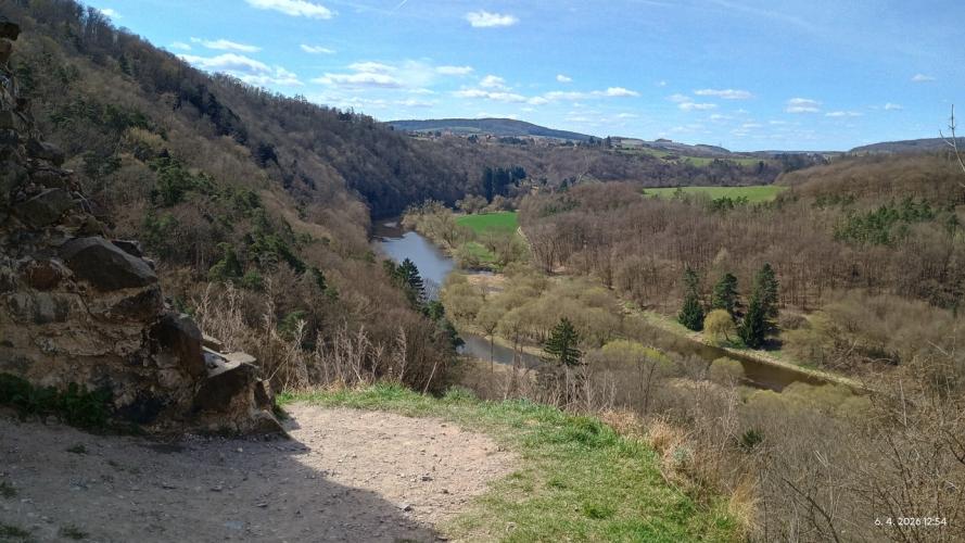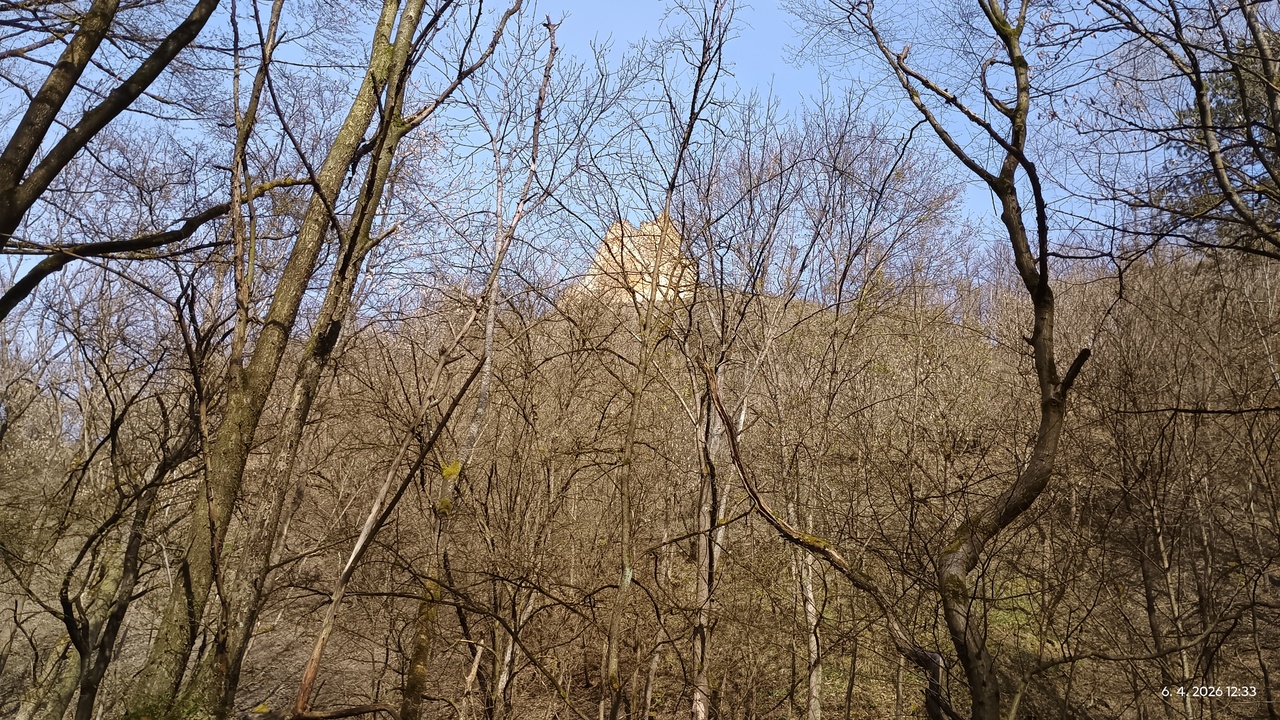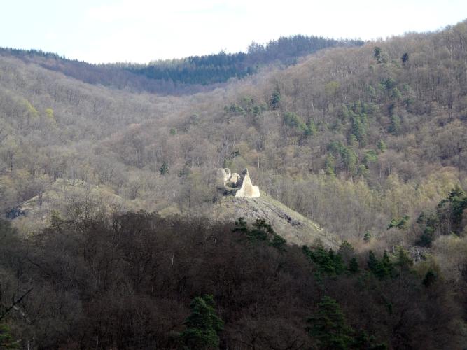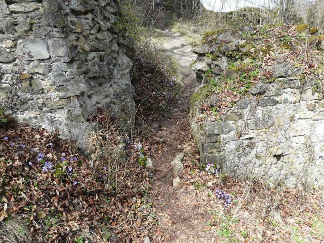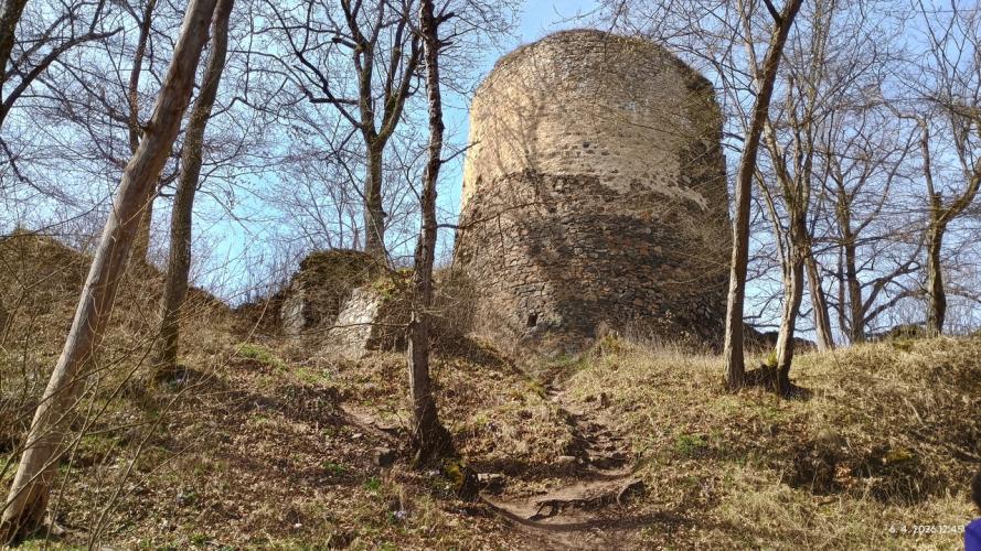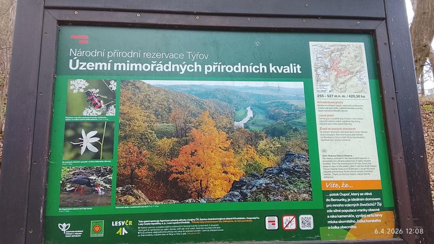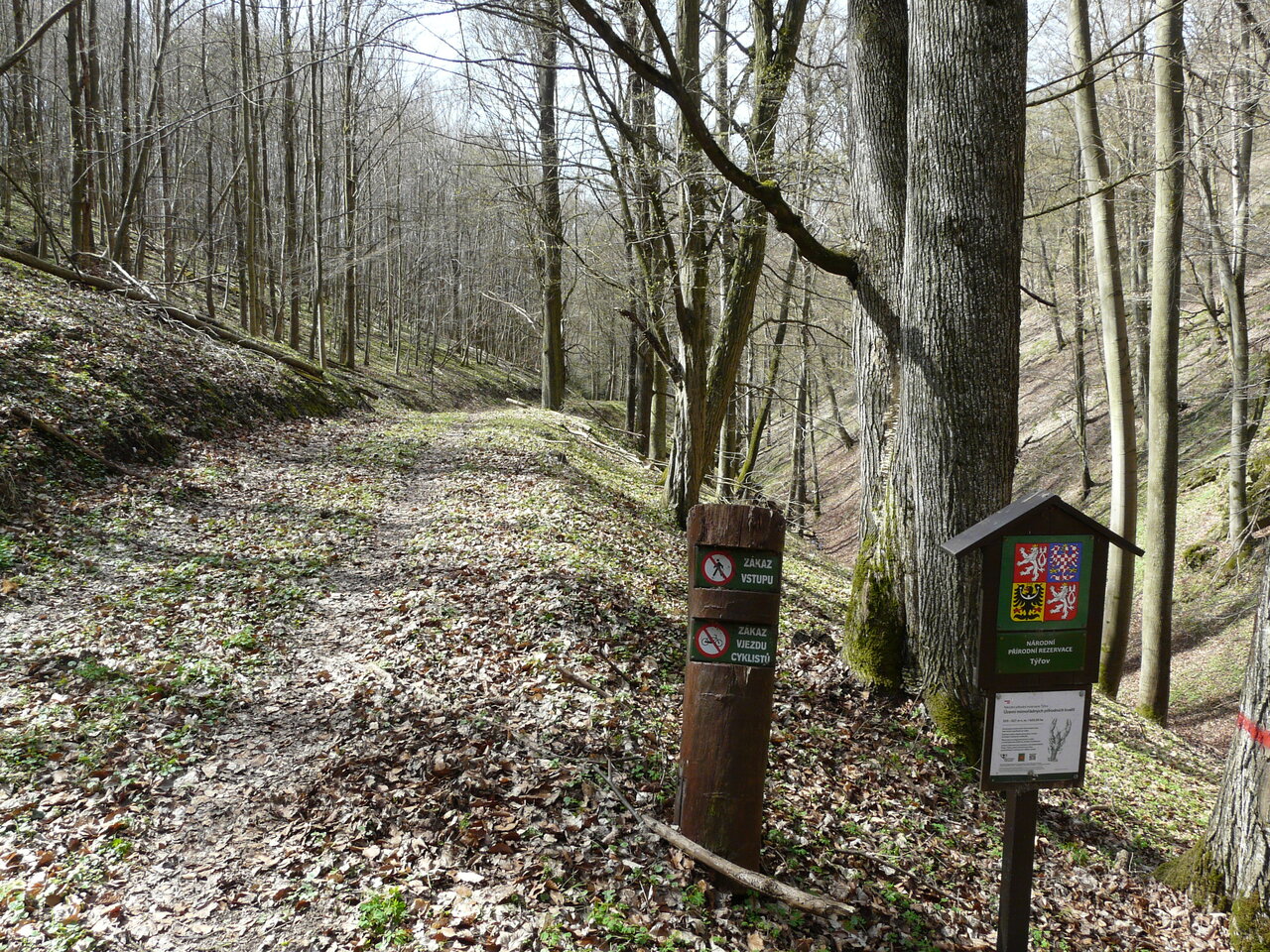 Cesta na Týřov. Pohyb mimo značené cesty v NPR zakázán, přitom ale značení končí mimo hrad.