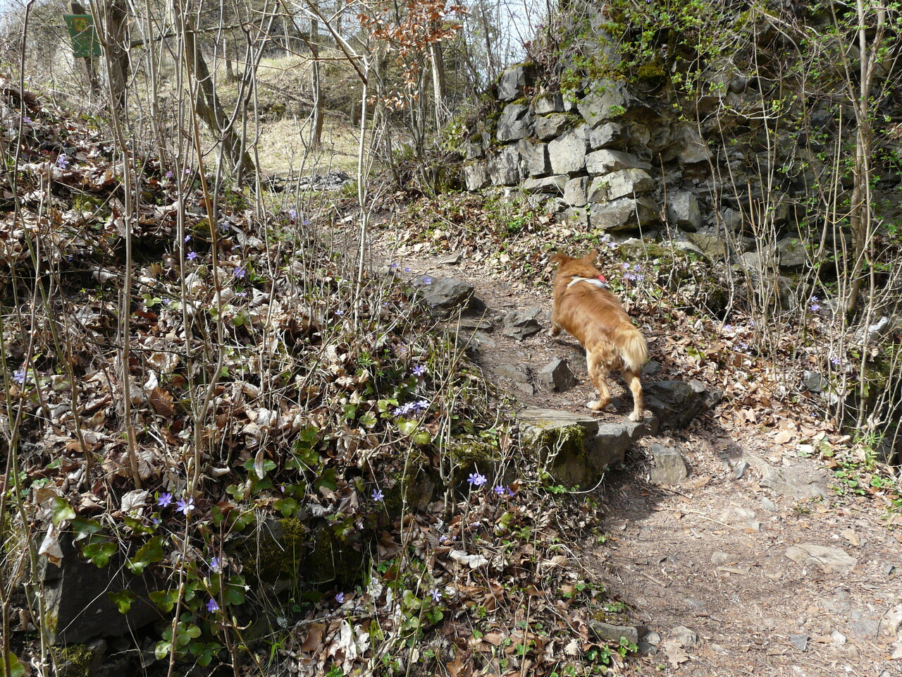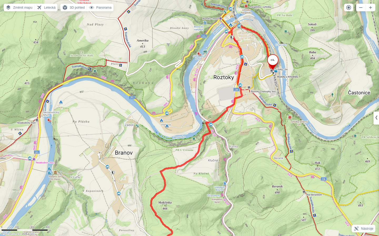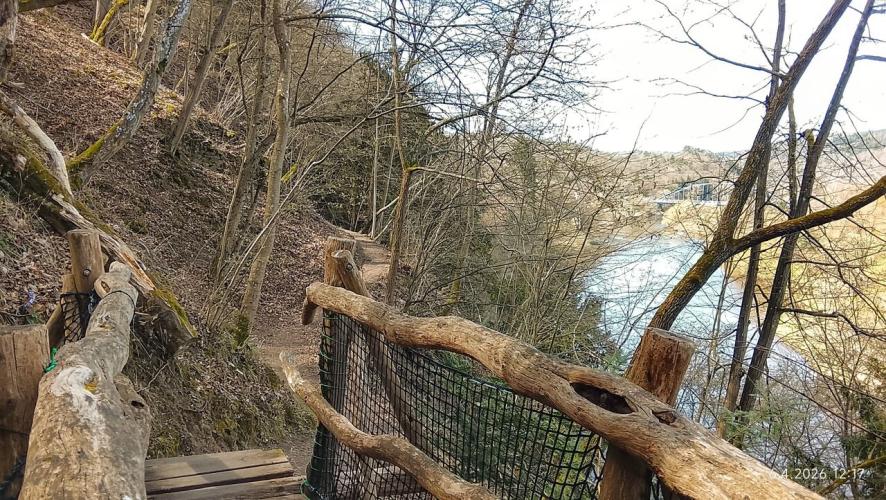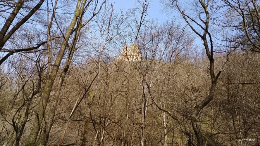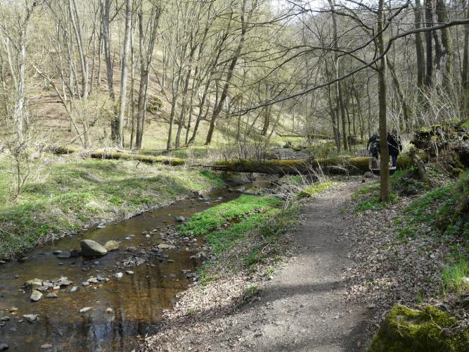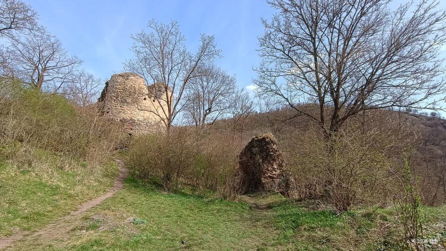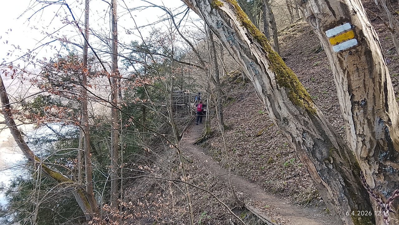 Cesta na Týřov. Pohyb mimo značené cesty v NPR zakázán, přitom ale značení končí mimo hrad.