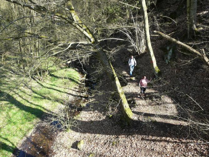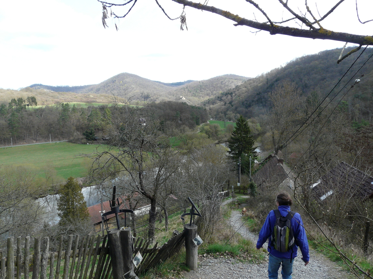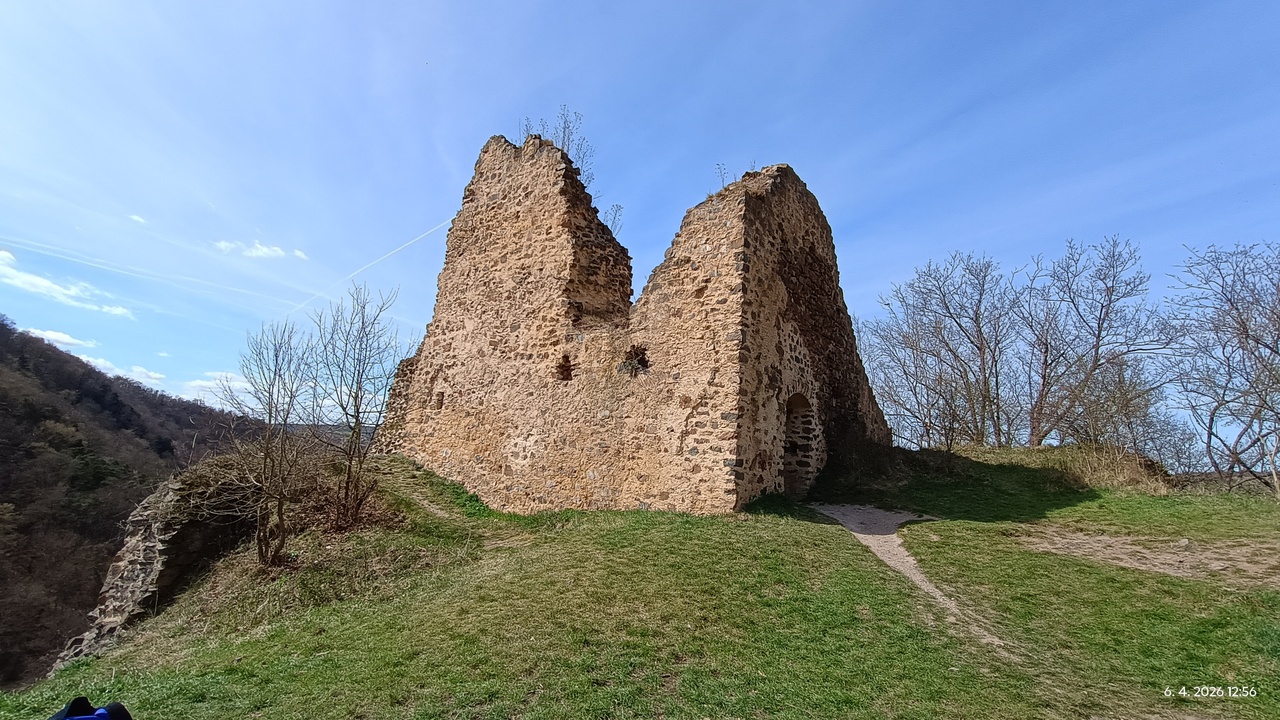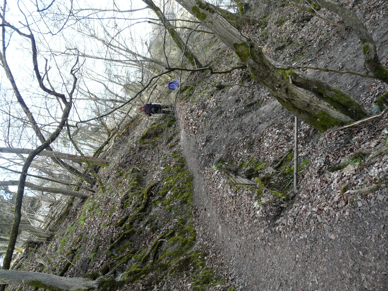 Cesta na Týřov. Pohyb mimo značené cesty v NPR zakázán, přitom ale značení končí mimo hrad.