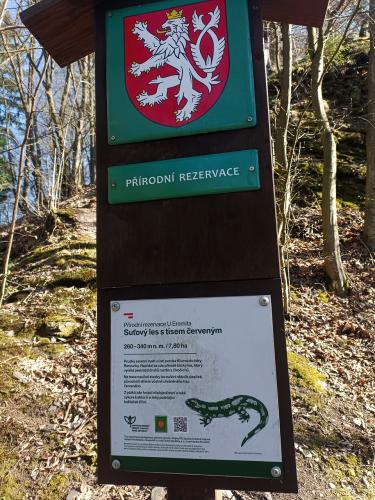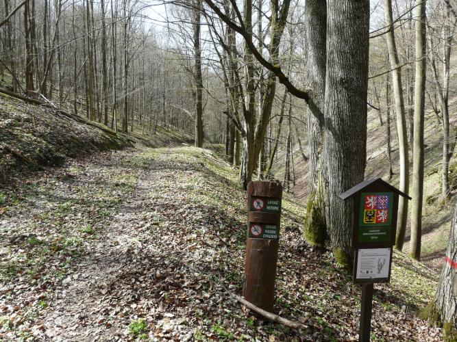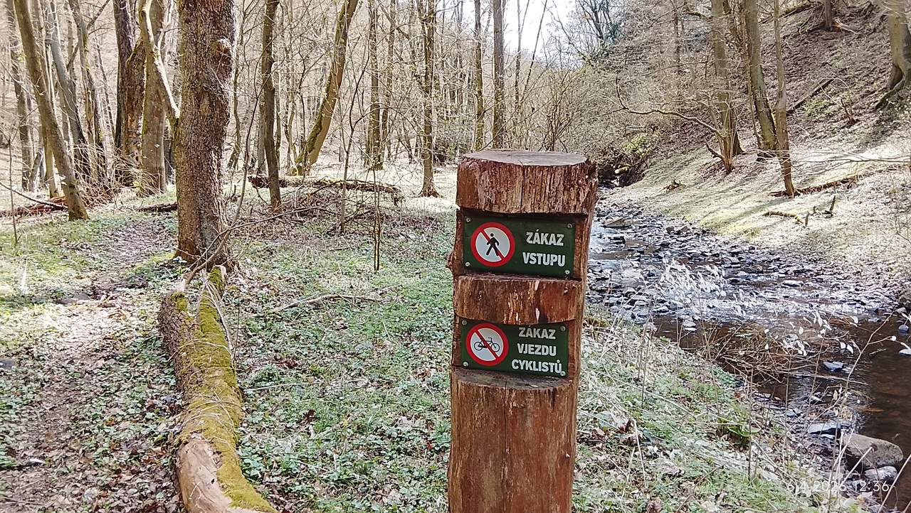 Zakázán pohyb mimo značené cesty, zřejmě tedy pěšina od nevzdělané lesní zvěře.